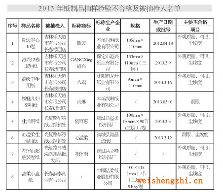 此次,對(duì)紙制品的定量、柔軟度、塵埃度、微生物指標(biāo)等10項(xiàng)內(nèi)容進(jìn)行了檢測(cè),共抽取樣品95個(gè)批次,其中抽取紙巾紙16個(gè)批次,經(jīng)檢測(cè)均合格;抽取衛(wèi)生巾、濕巾48個(gè)批次,經(jīng)檢測(cè)均合格,抽取衛(wèi)生紙31個(gè)批次,有8個(gè)批次不合格,抽檢商品不合格率32%。不合格商品存在的主要問題是外觀質(zhì)量、洞眼、塵埃度等項(xiàng)目不符合國(guó)家標(biāo)準(zhǔn)。為此,長(zhǎng)春市工商行政管理局要求,自公布之日起,不合格商品經(jīng)營(yíng)者應(yīng)依據(jù)公布的監(jiān)測(cè)信息,停止銷售不合格商品。基層工商分局要對(duì)本轄區(qū)市場(chǎng)上銷售的不合格商品組織清查,并對(duì)不合格商品經(jīng)營(yíng)者依法進(jìn)行處理。